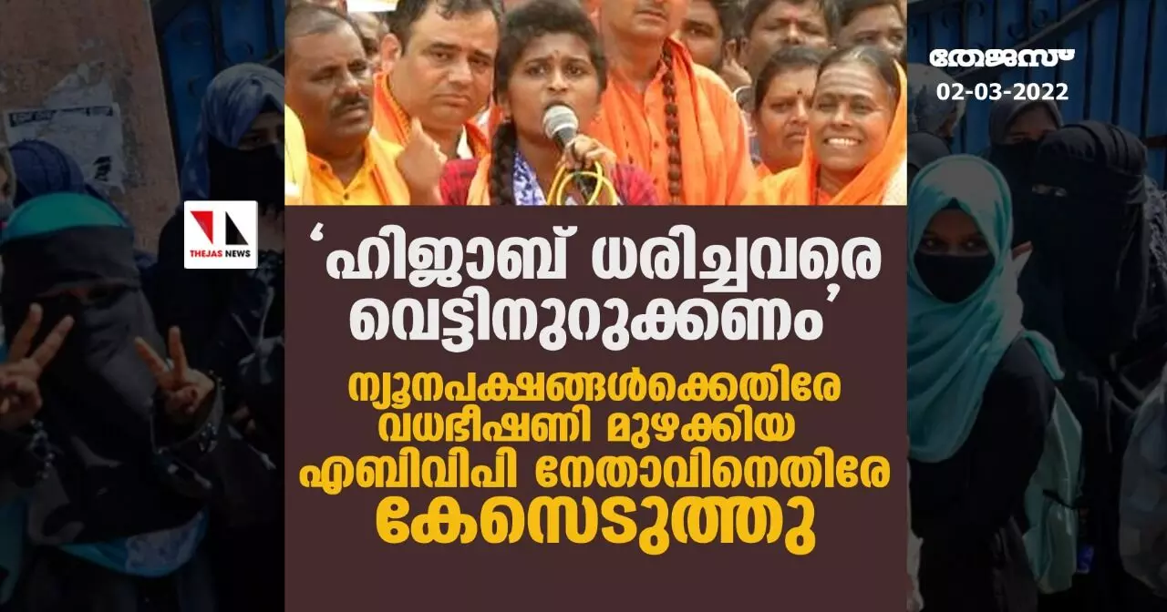 'ഹിജാബ് ധരിച്ചവരെ വെട്ടിനുറുക്കണം';ന്യൂനപക്ഷങ്ങള്ക്കെതിരേ വധഭീഷണി മുഴക്കിയ എബിവിപി നേതാവിനെതിരേ കേസെടുത്തു