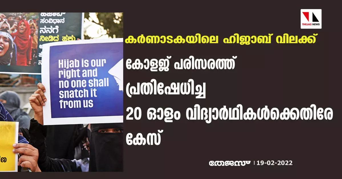 കര്ണാടകയിലെ ഹിജാബ് വിലക്ക്; കോളജ് പരിസരത്ത് പ്രതിഷേധിച്ച 20 ഓളം വിദ്യാര്ഥികള്ക്കെതിരേ കേസ്