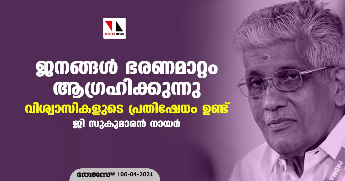 ജനങ്ങള് ഭരണമാറ്റം ആഗ്രഹിക്കുന്നു; വിശ്വാസികളുടെ പ്രതിഷേധം ഉണ്ട്: ജി സുകുമാരന് നായര്