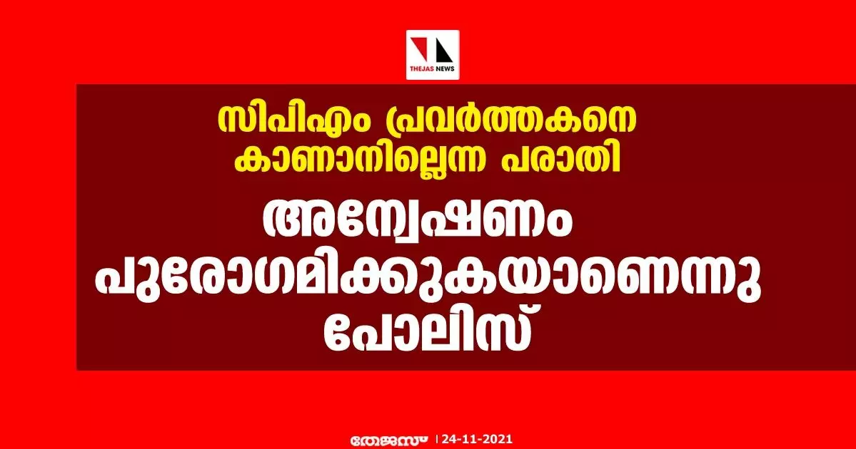 സിപിഎം പ്രവര്ത്തകനെ കാണാനില്ലെന്ന പരാതി: അന്വേഷണം പുരോഗമിക്കുകയാണെന്നു പോലിസ്