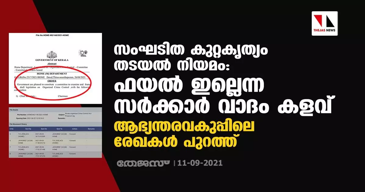സംഘടിത കുറ്റകൃത്യം തടയല് നിയമം: ഫയല് ഇല്ലെന്ന സര്ക്കാര് വാദം കളവ്; ആഭ്യന്തരവകുപ്പിലെ രേഖകള് പുറത്ത്