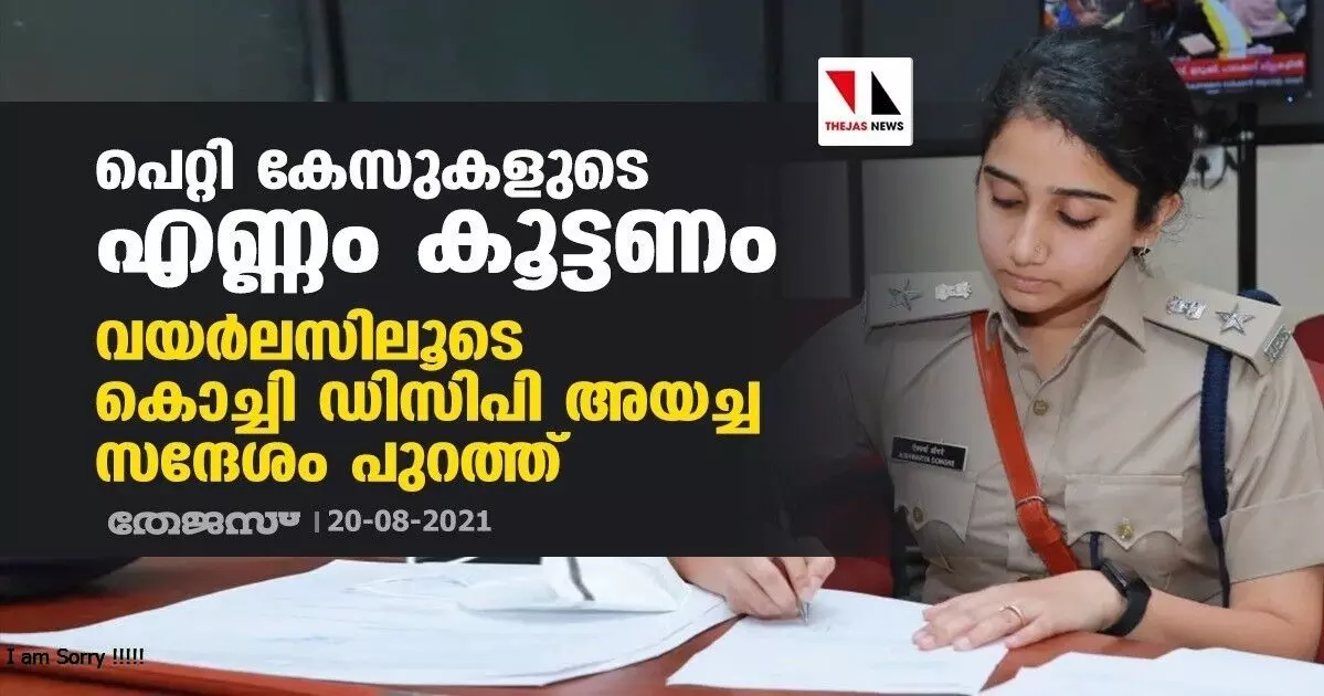 പെറ്റി കേസുകളുടെ എണ്ണം കൂട്ടണം; വയര്ലസിലൂടെ കൊച്ചി ഡിസിപി അയച്ച സന്ദേശം പുറത്ത്