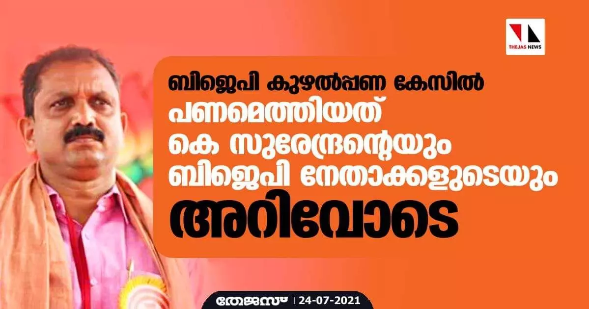 ബിജെപി കുഴൽപ്പണ കേസിൽ പണമെത്തിയത് കെ സുരേന്ദ്രന്റെയും ബിജെപി നേതാക്കളുടെയും അറിവോടെ