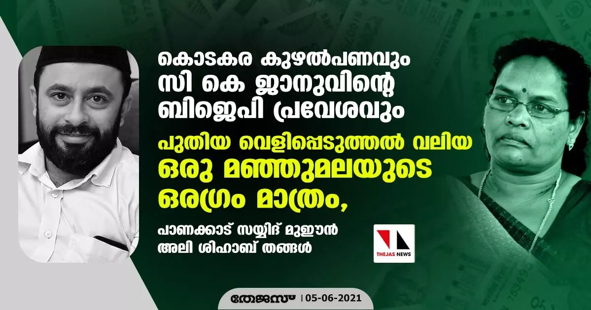 കൊടകര കുഴല്പണവും സി കെ ജാനുവിന്റെ ബിജെപി പ്രവേശവും; പുതിയ വെളിപ്പെടുത്തല് വലിയ ഒരു മഞ്ഞുമലയുടെ ഒരഗ്രം മാത്രം, പാണക്കാട് സയ്യിദ് മുഈന് അലി ശിഹാബ് തങ്ങള്