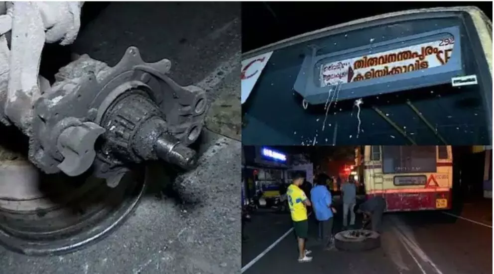 എറണാകുളത്ത് ഓടിക്കൊണ്ടിരുന്ന കെഎസ്ആര്ടിസി ബസിൻ്റെ ടയര് ഊരിത്തെറിച്ചു പോയി