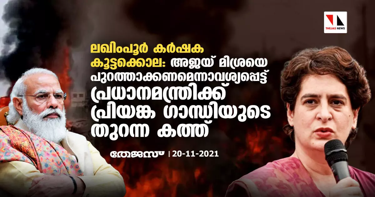 ലഖിംപൂര് കര്ഷക കൂട്ടക്കൊല: അജയ് മിശ്രയെ പുറത്താക്കണമെന്നാവശ്യപ്പെട്ട് പ്രധാനമന്ത്രിക്ക് പ്രിയങ്ക ഗാന്ധിയുടെ തുറന്ന കത്ത്