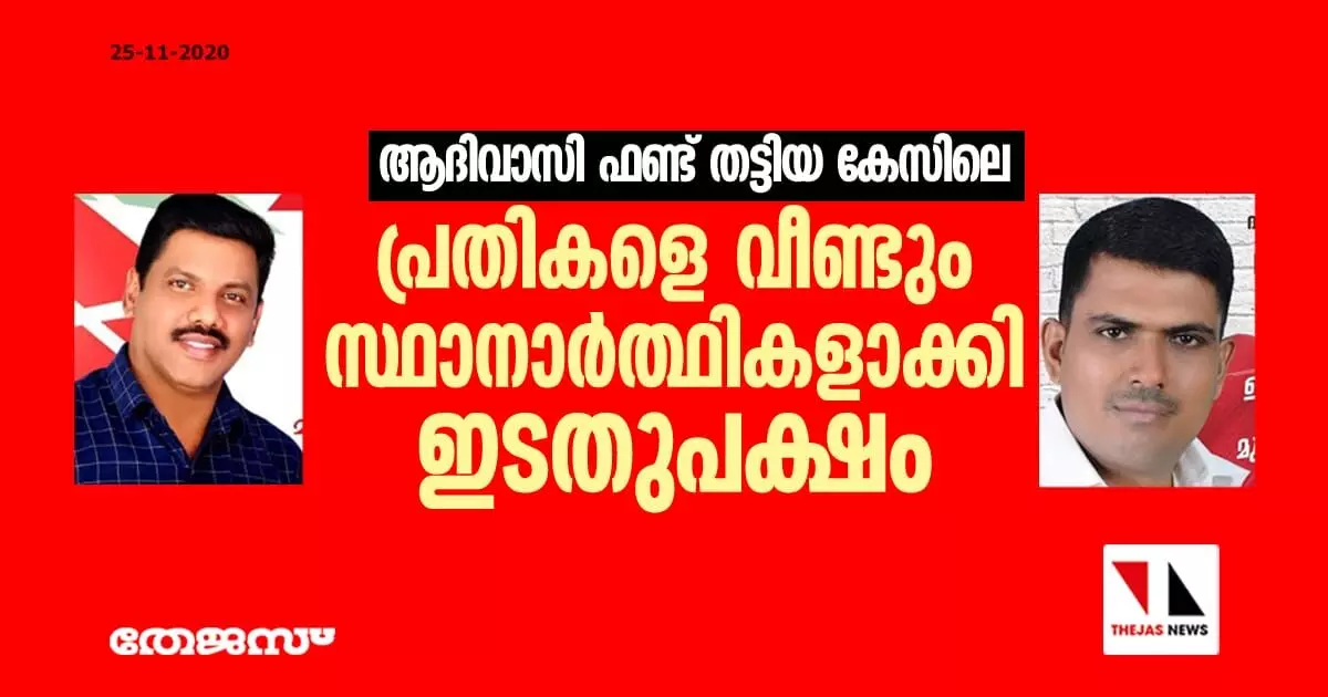 ആദിവാസി ഫണ്ട് തട്ടിയ കേസിലെ പ്രതികളെ വീണ്ടും സ്ഥാനാര്ത്ഥികളാക്കി ഇടതുപക്ഷം