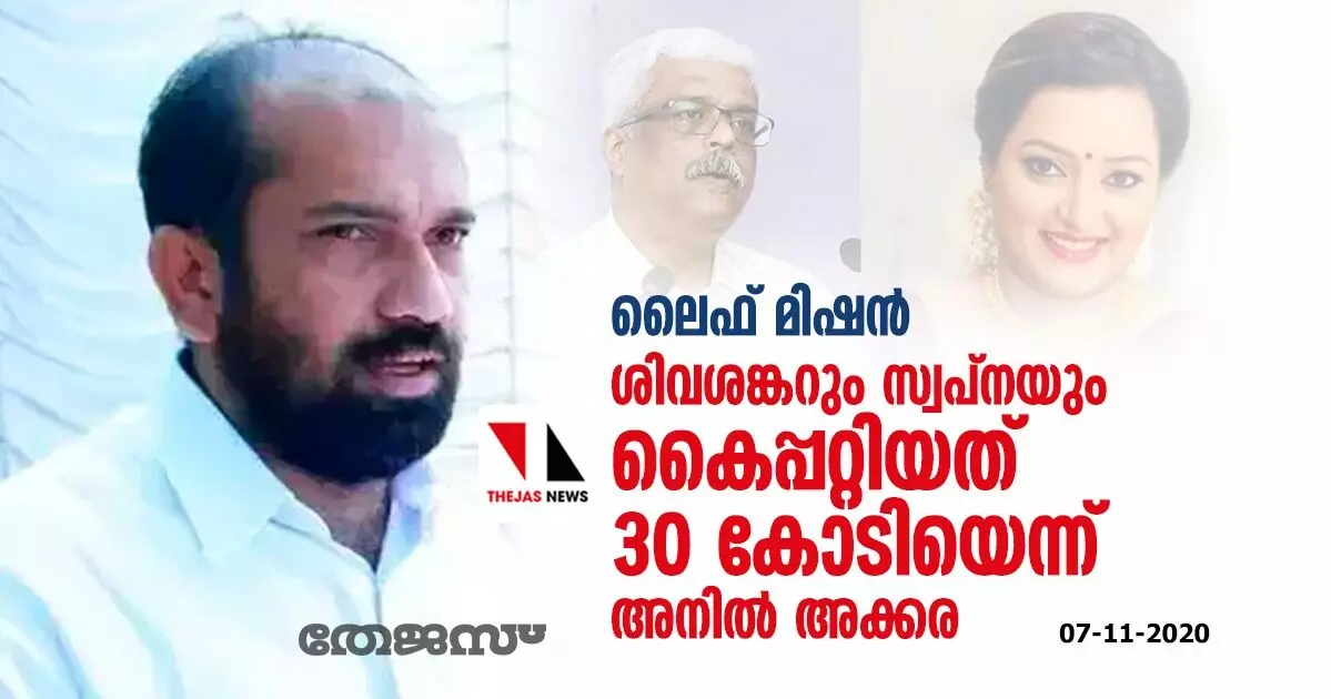 ലൈഫ് മിഷന്: ശിവശങ്കറും സ്വപ്നയും കൈപ്പറ്റിയത് 30 കോടിയെന്ന് അനില് അക്കര