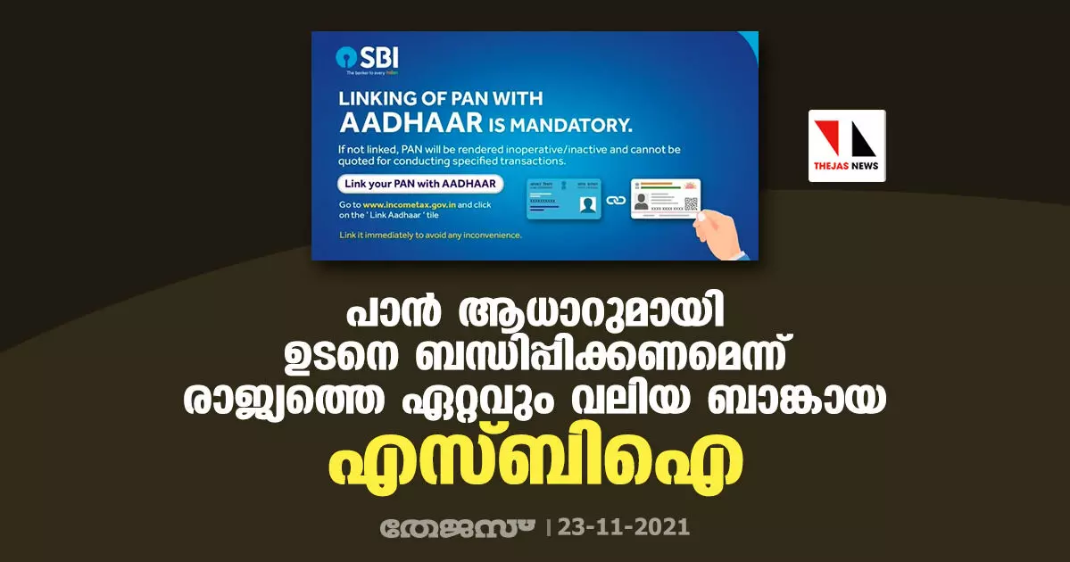 പാൻ ആധാറുമായി ഉടനെ ബന്ധിപ്പിക്കണമെന്ന് രാജ്യത്തെ ഏറ്റവും വലിയ ബാങ്കായ എസ്ബിഐ