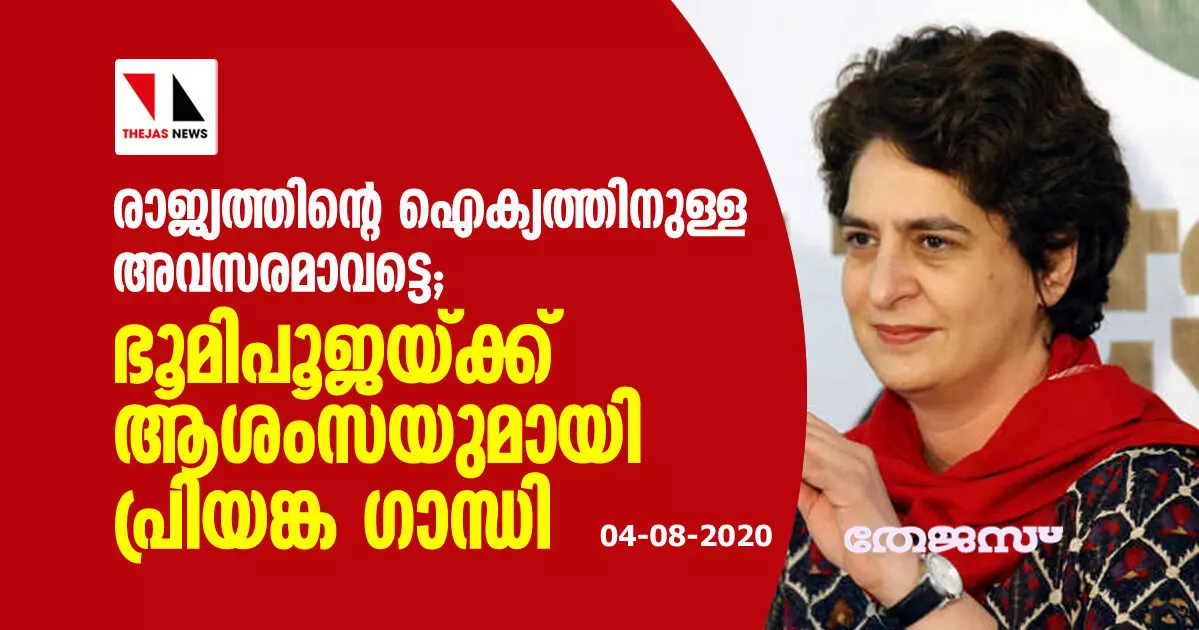 രാജ്യത്തിന്റെ ഐക്യത്തിനുള്ള അവസരമാവട്ടെ; ഭൂമിപൂജയ്ക്ക് ആശംസയുമായി പ്രിയങ്ക ഗാന്ധി