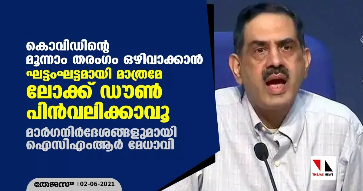കൊവിഡിന്റെ മൂന്നാം തരംഗം ഒഴിവാക്കാന് ഘട്ടംഘട്ടമായി മാത്രമേ ലോക്ക് ഡൗണ് പിന്വലിക്കാവൂ; മാര്ഗനിര്ദേശങ്ങളുമായി ഐസിഎംആര് മേധാവി