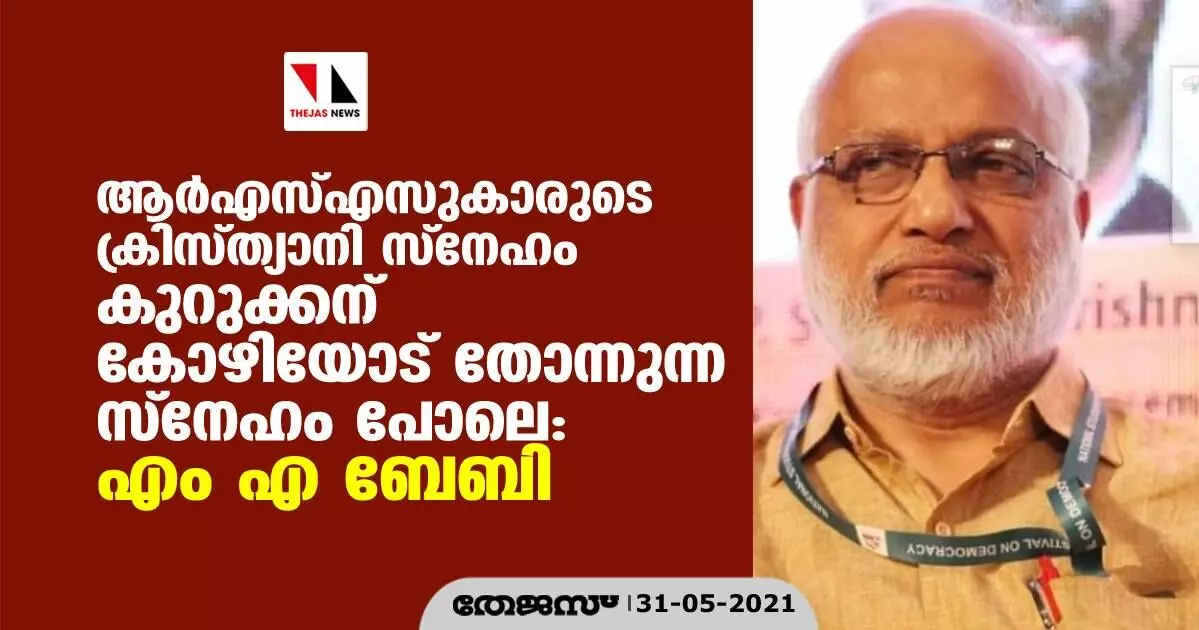 ആര്എസ്എസുകാരുടെ ക്രിസ്ത്യാനി സ്നേഹം കുറുക്കന് കോഴിയോട് തോന്നുന്ന സ്നേഹം പോലെ: എം എ ബേബി