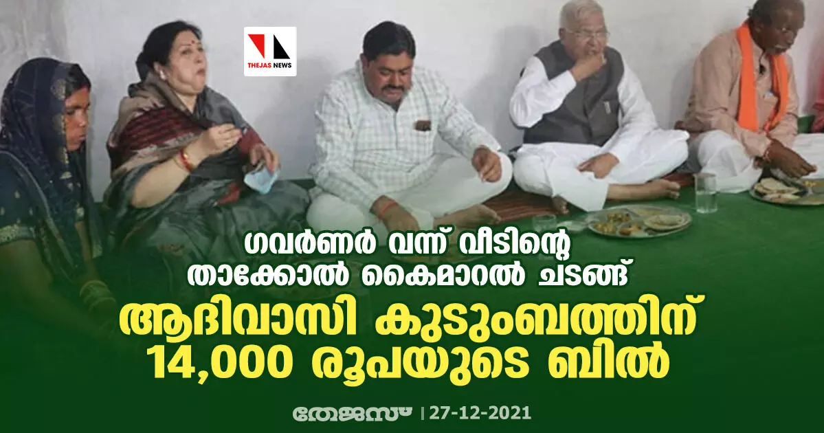 ഗവര്ണര് വന്ന് വീടിന്റെ താക്കോല് കൈമാറൽ ചടങ്ങ്; ആദിവാസി കുടുംബത്തിന് 14,000 രൂപയുടെ ബില്