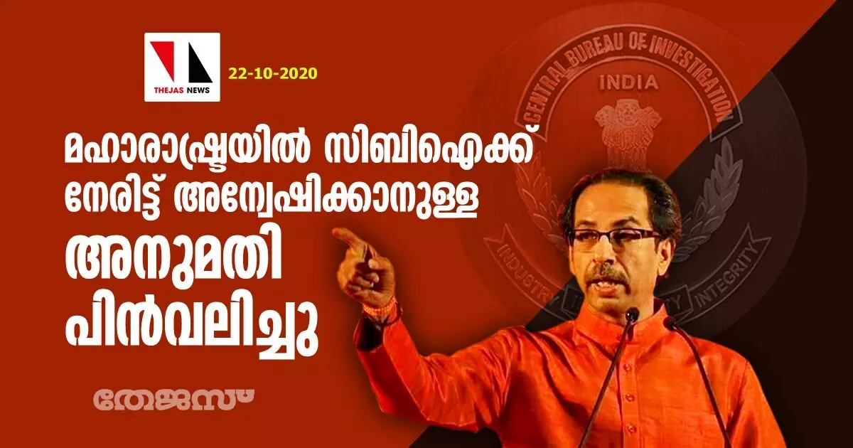 മഹാരാഷ്ട്രയില് സിബിഐക്ക് നേരിട്ട് അന്വേഷിക്കാനുള്ള അനുമതി പിന്വലിച്ചു