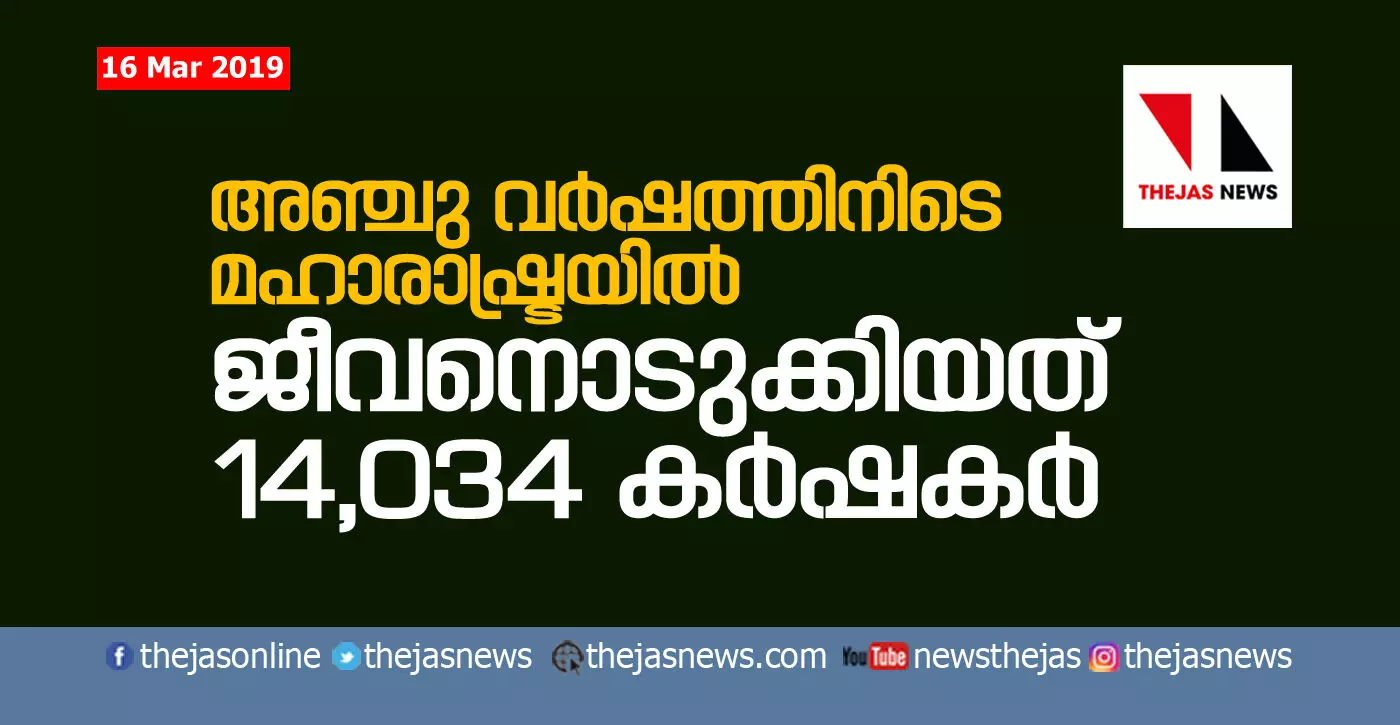 മഹാരാഷ്ട്രയില് അഞ്ചുവര്ഷത്തിനുള്ളില് ജീവനൊടുക്കിയത് 14,034 കര്ഷകര്