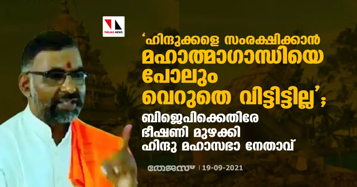 'ഹിന്ദുക്കളെ സംരക്ഷിക്കാന് മഹാത്മാഗാന്ധിയെ പോലും വെറുതെ വിട്ടിട്ടില്ല'; ബിജെപിക്കെതിരേ ഭീഷണി മുഴക്കി ഹിന്ദു മഹാസഭാ നേതാവ്