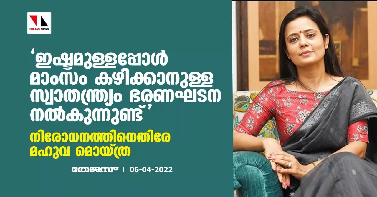 'ഇഷ്ടമുള്ളപ്പോള് മാംസം കഴിക്കാനുള്ള സ്വാതന്ത്ര്യം ഭരണഘടന നല്കുന്നുണ്ട്'; നിരോധനത്തിനെതിരേ മഹുവ മൊയ്ത്ര