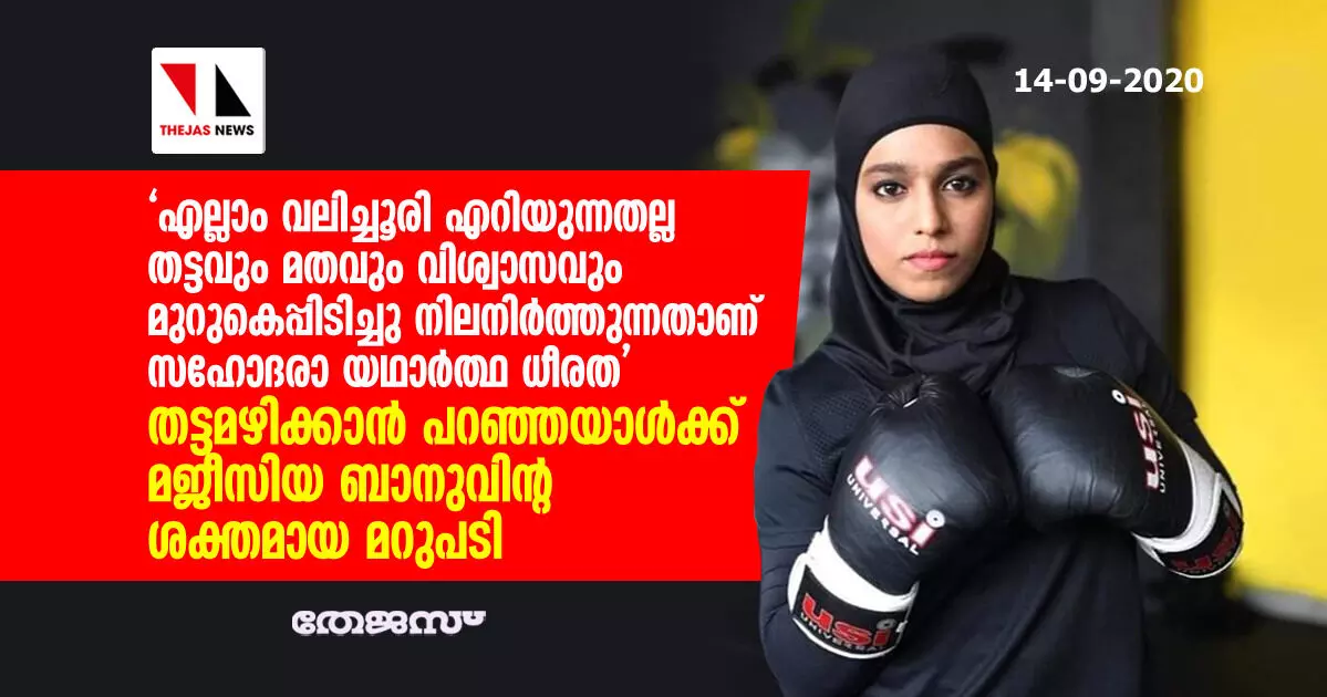 'എല്ലാം വലിച്ചൂരി എറിയുന്നതല്ല തട്ടവും, മതവും, വിശ്വാസവും മുറുകെപ്പിടിച്ചു നിലനിര്ത്തുന്നതാണ് സഹോദരാ യഥാര്ത്ഥ ധീരത'- തട്ടമഴിക്കാന് പറഞ്ഞയാള്ക്ക് മജീസിയ ബാനുവിന്റ ശക്തമായ മറുപടി