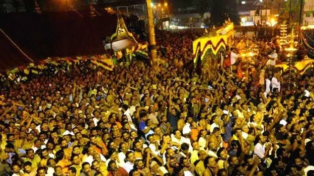 മകരസംക്രമസമയമായ തിങ്കളാഴ്ച രാത്രി സംക്രമപൂജയും അഭിഷേകവും നടന്നു. സംക്രമാഭിഷേകത്തിനുള്ള നെയ്യ് കവടിയാര് കൊട്ടാരത്തില്നിന്ന് ഞായറാഴ്ച വൈകീട്ട് സന്നിധാനത്ത് എത്തിച്ചു. പന്തളത്തുനിന്ന് പുറപ്പെട്ട തിരുവാഭരണ ഘോഷയാത്രയെ തിങ്കളാഴ്ച വൈകീട്ട് പതിനെട്ടാംപടിക്ക് മുകളില് ദേവസ്വംമന്ത്രി കടകംപള്ളി സുരേന്ദ്രന്റെയും ദേവസ്വം ബോര്ഡ് പ്രസിഡന്റ് എ പദ്മകുമാറിന്റെയും നേതൃത്വത്തില് സ്വീകരിച്ചു. തന്ത്രി കണ്ഠര് രാജീവരും മേല്ശാന്തി വാസുദേവന്നമ്പൂതിരിയും ചേര്ന്ന് തിരുവാഭരണപേടകം ഏറ്റുവാങ്ങി. മകരവിളക്ക് ഉത്സവത്തിന് മുന്നോടിയായി ഞായറാഴ്ച ക്ഷേത്രത്തിനുള്ളില് ബിംബശുദ്ധിക്രിയകള് നടന്നു.