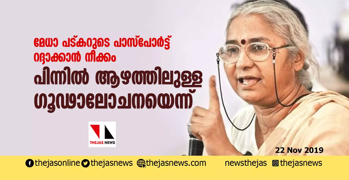 മേധാ പട്കറുടെ പാസ്പോര്ട്ട് റദ്ദാക്കാന് നീക്കം; പിന്നില് ആഴത്തിലുള്ള ഗൂഢാലോചനയെന്ന്