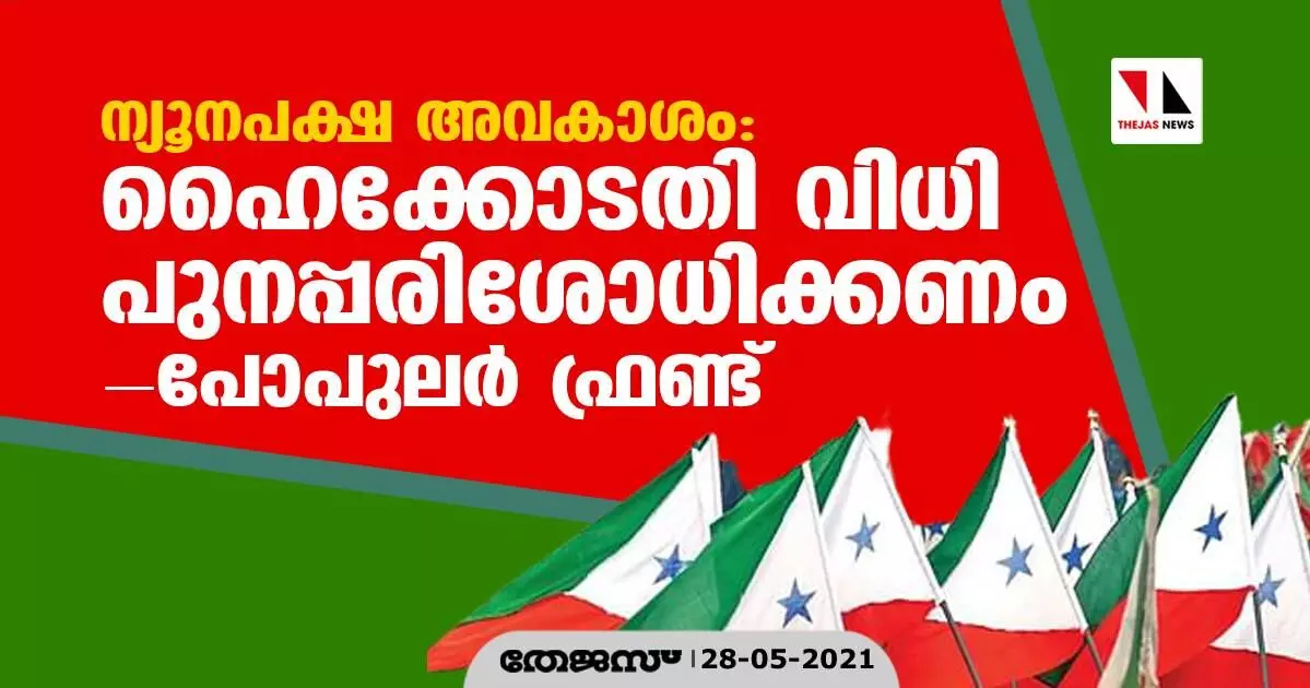 ന്യൂനപക്ഷ അവകാശം: ഹൈക്കോടതി വിധി പുനപ്പരിശോധിക്കണം- പോപുലര് ഫ്രണ്ട്