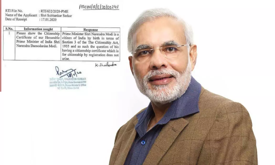 ന്യൂഡല്ഹി: പ്രധാനമന്ത്രി നരേന്ദ്ര മോദിക്ക് പൗരത്വ സര്ട്ടിഫിക്കറ്റ് ഇല്ലെന്നും അദ്ദേഹം ജനനത്തിലൂടെ ഇന്ത്യന് പൗരനാണെന്നും പ്രധാനമന്ത്രിയുടെ ഓഫിസ്. പ്രധാനമന്ത്രി നരേന്ദ്ര മോദിയുടെ പൗരത്വ സര്ട്ടിഫിക്കറ്റ് ആവശ്യപ്പെട്ട് സുഭങ്കര് സര്ക്കാര് 2020 ജനുവരി 17ന് വിവരാവകാശ പ്രകാരം നല്കിയ മറുപടിയിലാണ് പിഎംഒയുടെ വിശദീകരണം. പ്രധാനമന്ത്രി നരേന്ദ്രമോദി 1955ലെ പൗരത്വ നിയമത്തിലെ സെക്്ഷന് 3 അനുസരിച്ച് ജനനത്തിലൂടെ ഇന്ത്യയിലെ ഒരു പൗരനാണെന്നും അതിനാല് അദ്ദേഹത്തിന് രജിസ്ട്രേഷന് വഴി പൗരത്വ സര്ട്ടിഫിക്കറ്റ് ഉണ്ടോയെന്ന ചോദ്യം ഉയരുന്നില്ലെന്നുമാണ് വിവരാവകാശ നിയമം പ്രകാരമുള്ള ചോദ്യത്തിന് മറുപടിയായി പിഎംഒ അണ്ടര് സെക്രട്ടറി പ്രവീണ് കുമാര് മറുപടി നല്കിയത്.