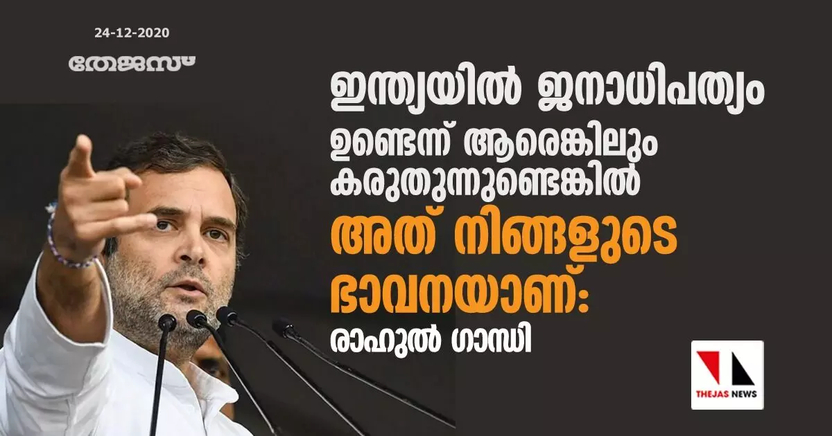 ഇന്ത്യയില് ജനാധിപത്യം ഉണ്ടെന്ന് ആരെങ്കിലും കരുതുന്നുണ്ടെങ്കില് അത് നിങ്ങളുടെ ഭാവനയാണ്: രാഹുല് ഗാന്ധി