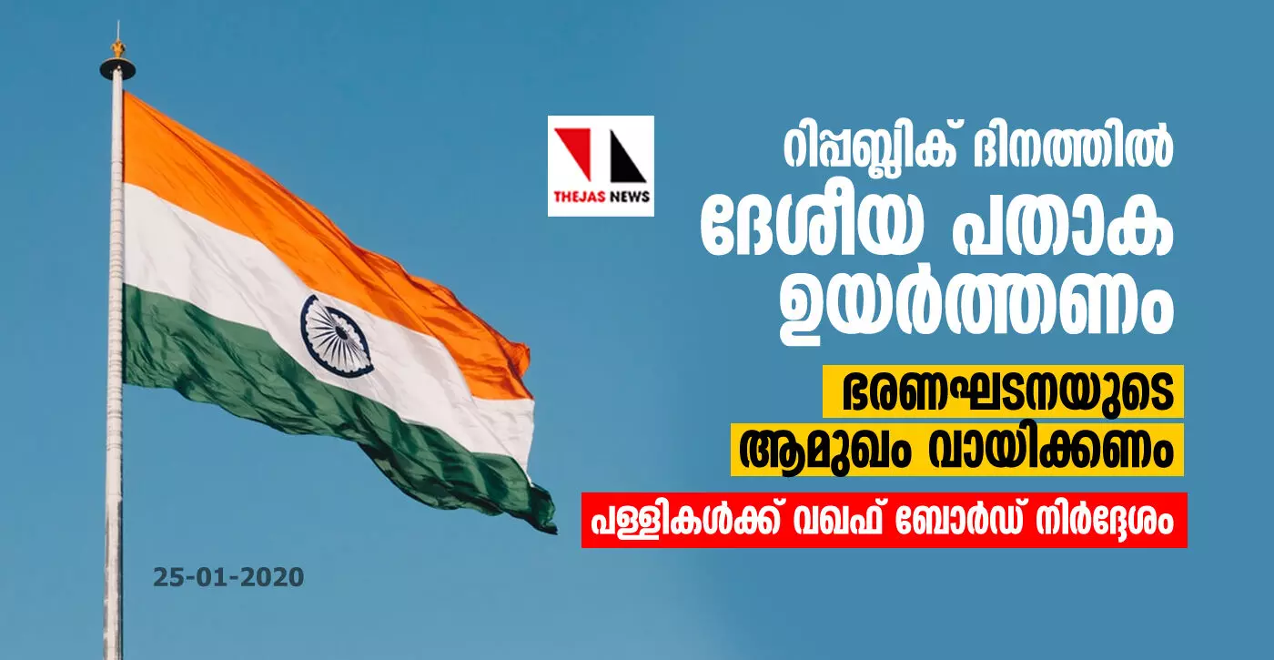 റിപ്പബ്ലിക് ദിനത്തില് ദേശീയ പതാക ഉയര്ത്തണം, ഭരണഘടനയുടെ ആമുഖം വായിക്കണം: പള്ളികള്ക്ക് വഖഫ് ബോര്ഡ് നിര്ദ്ദേശം