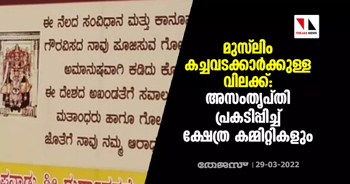 മുസ്ലിം കച്ചവടക്കാര്ക്കുള്ള വിലക്ക്: അസംതൃപ്തി പ്രകടിപ്പിച്ച് ക്ഷേത്ര കമ്മിറ്റികളും