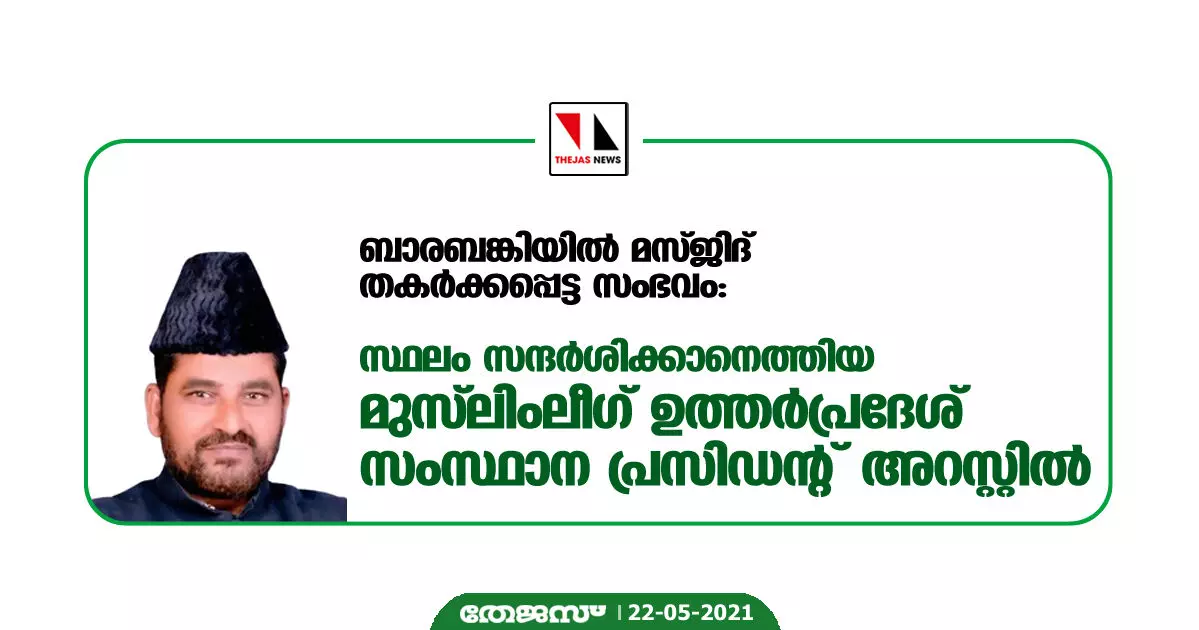ബാരബങ്കിയില് മസ്ജിദ് തകര്ക്കപ്പെട്ട സംഭവം: സ്ഥലം സന്ദര്ശിക്കാനെത്തിയ മുസ് ലിംലീഗ് ഉത്തര്പ്രദേശ് സംസ്ഥാന പ്രസിഡന്റ് അറസ്റ്റില്