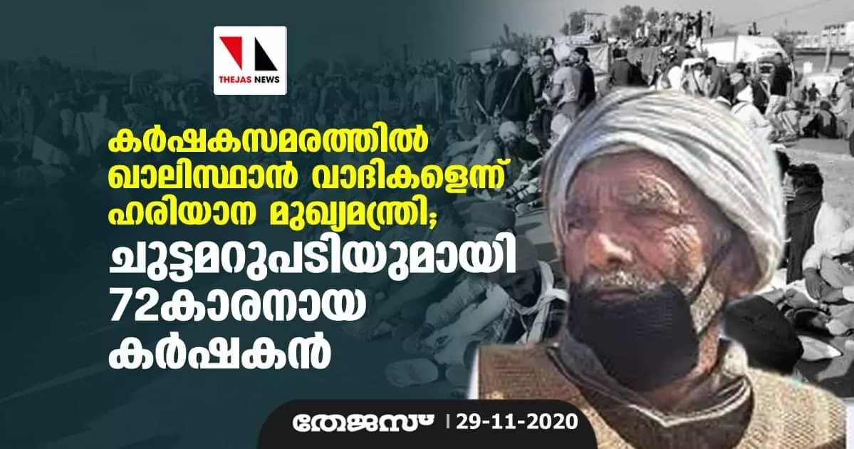 കര്ഷകസമരത്തില് ഖാലിസ്ഥാന് വാദികളെന്ന് ഹരിയാന മുഖ്യമന്ത്രി; ചുട്ടമറുപടിയുമായി 72കാരനായ കർഷകൻ