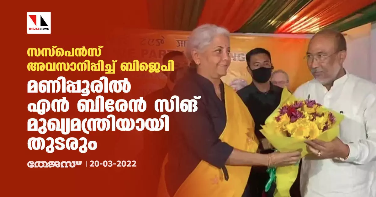 സസ്പെന്സ് അവസാനിപ്പിച്ച് ബിജെപി; മണിപ്പൂരില് എന് ബിരേന് സിങ് മുഖ്യമന്ത്രിയായി തുടരും