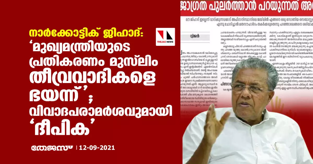നാര്ക്കോട്ടിക് ജിഹാദ്: 'മുഖ്യമന്ത്രിയുടെ പ്രതികരണം മുസ്ലിം തീവ്രവാദികളെ ഭയന്ന്'; വിവാദപരാമര്ശവുമായി 'ദീപിക'