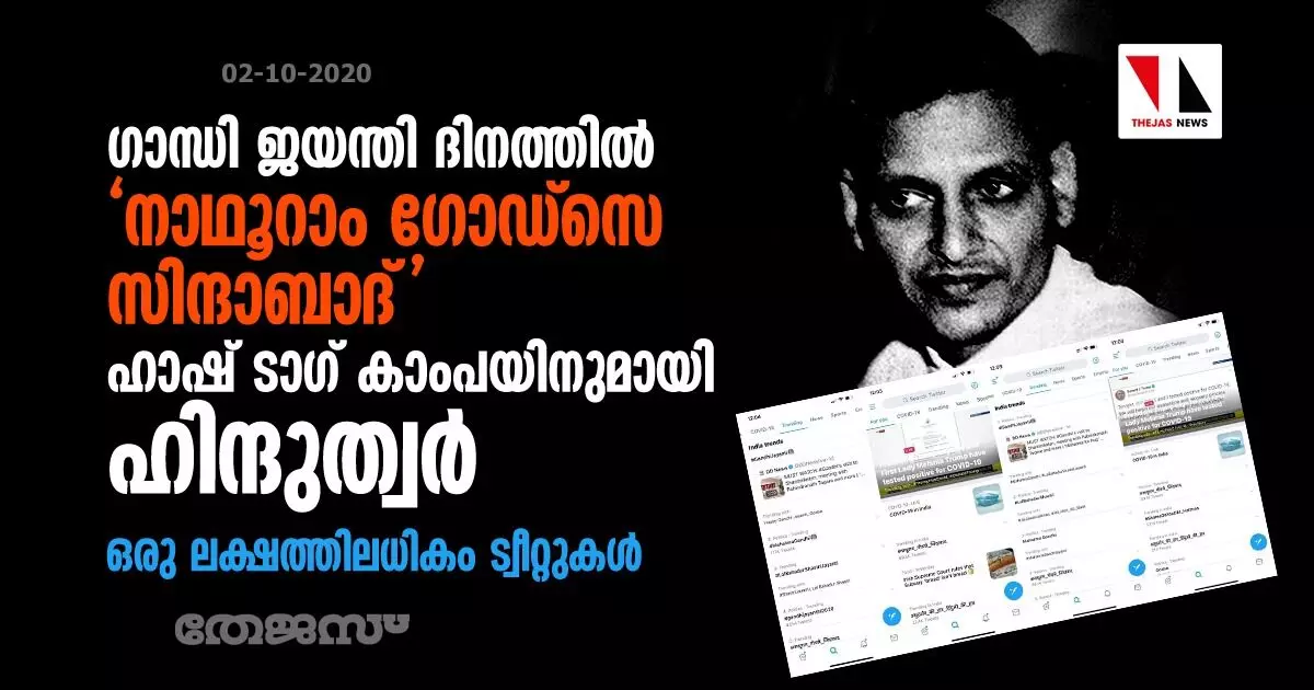 ഗാന്ധി ജയന്തി ദിനത്തിൽ നാഥൂറാം ഗോഡ്സെ സിന്ദാബാദ് ഹാഷ് ടാഗ് കാംപയിനുമായി ഹിന്ദുത്വർ