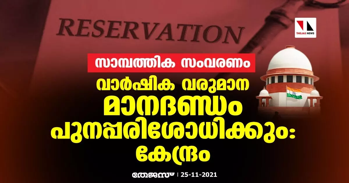 സാമ്പത്തിക സംവരണം: വാര്ഷിക വരുമാന മാനദണ്ഡം പുനപ്പരിശോധിക്കുമെന്ന് കേന്ദ്രം
