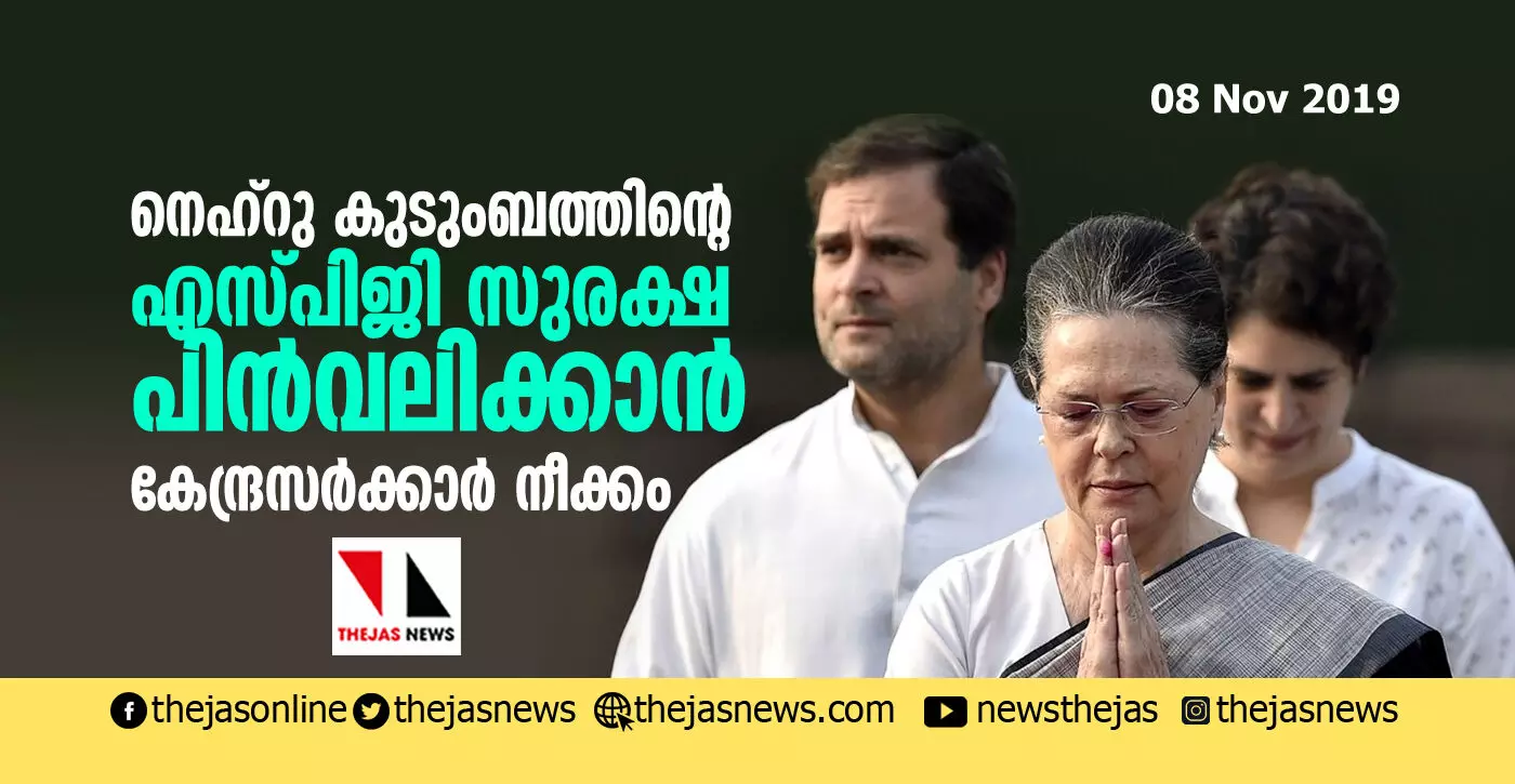 നെഹ്റു കുടുംബത്തിന്റെ എസ്പിജി സുരക്ഷ പിന്വലിക്കാന് കേന്ദ്രസര്ക്കാര് നീക്കം