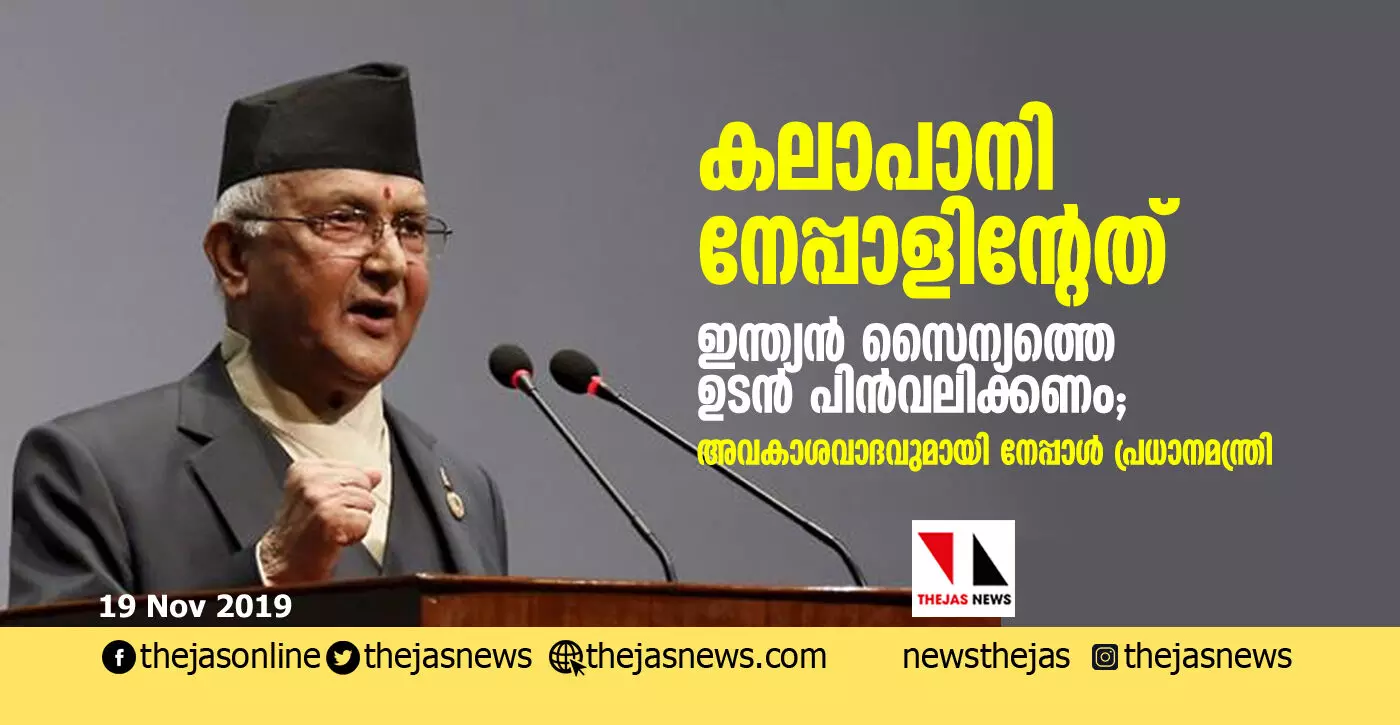 കലാപാനി നേപ്പാളിന്റേത്; ഇന്ത്യന് സൈന്യത്തെ ഉടന് പിന്വലിക്കണമെന്ന് നേപ്പാള് പ്രധാനമന്ത്രി