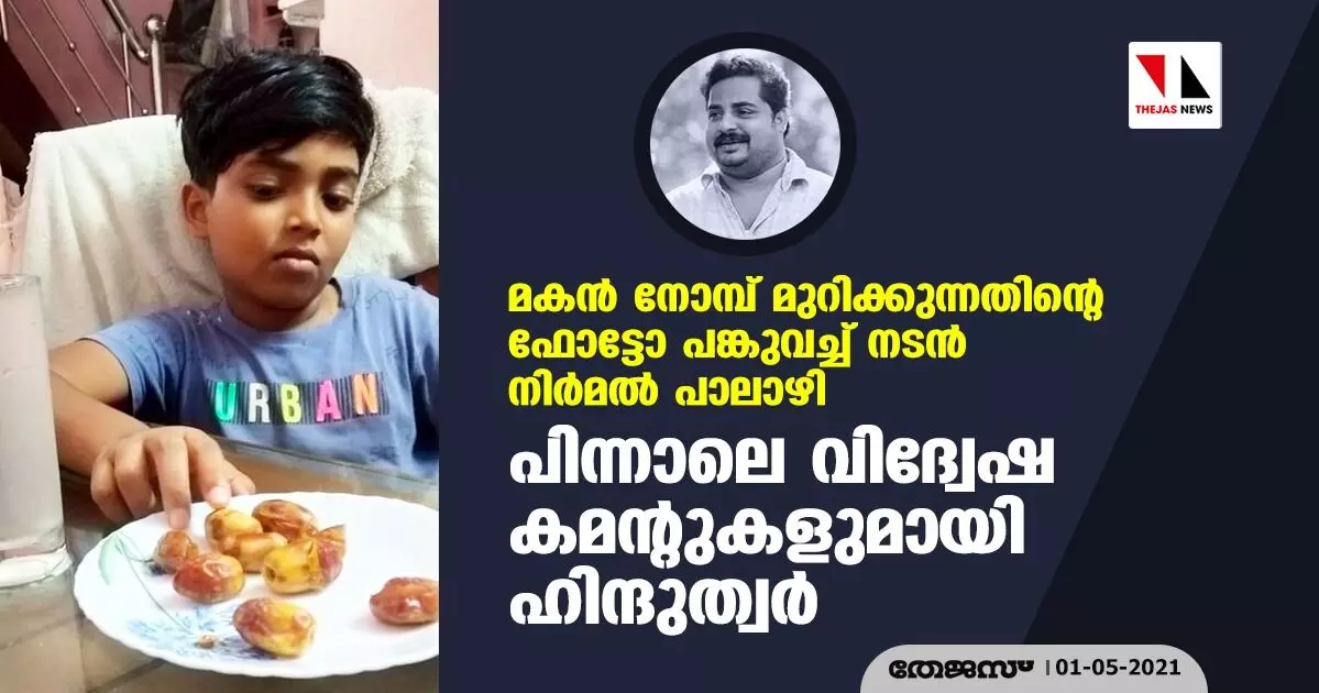 മകൻ നോമ്പ് മുറിക്കുന്നതിന്റെ ഫോട്ടോ പങ്കുവച്ച് നടൻ നിർമൽ പാലാഴി; പിന്നാലെ വിദ്വേഷ കമന്റുകളുമായി ഹിന്ദുത്വർ