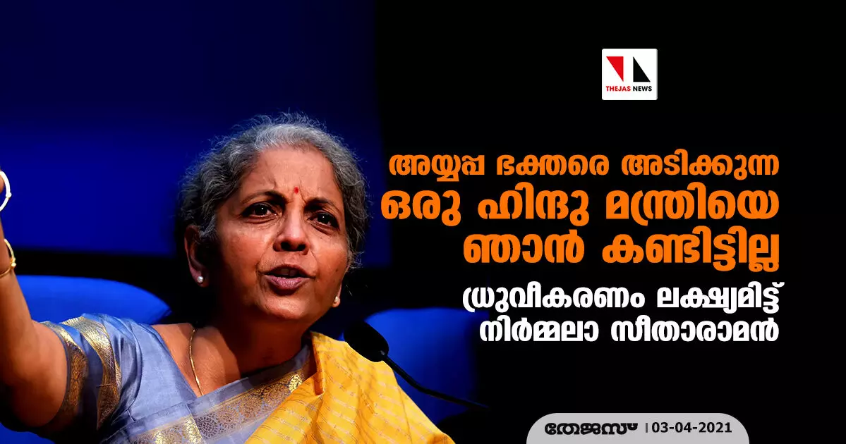 അയ്യപ്പ ഭക്തരെ അടിക്കുന്ന ഒരു ഹിന്ദു മന്ത്രിയെ ഞാൻ കണ്ടിട്ടില്ല; ധ്രുവീകരണം ലക്ഷ്യമിട്ട് നിർമ്മലാ സീതാരാമൻ