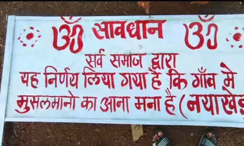 മുസ്ലിംകള്ക്ക് ഗ്രാമത്തില് പ്രവേശനമില്ലെന്ന് ബോര്ഡ് സ്ഥാപിച്ച് ഹിന്ദുത്വര്