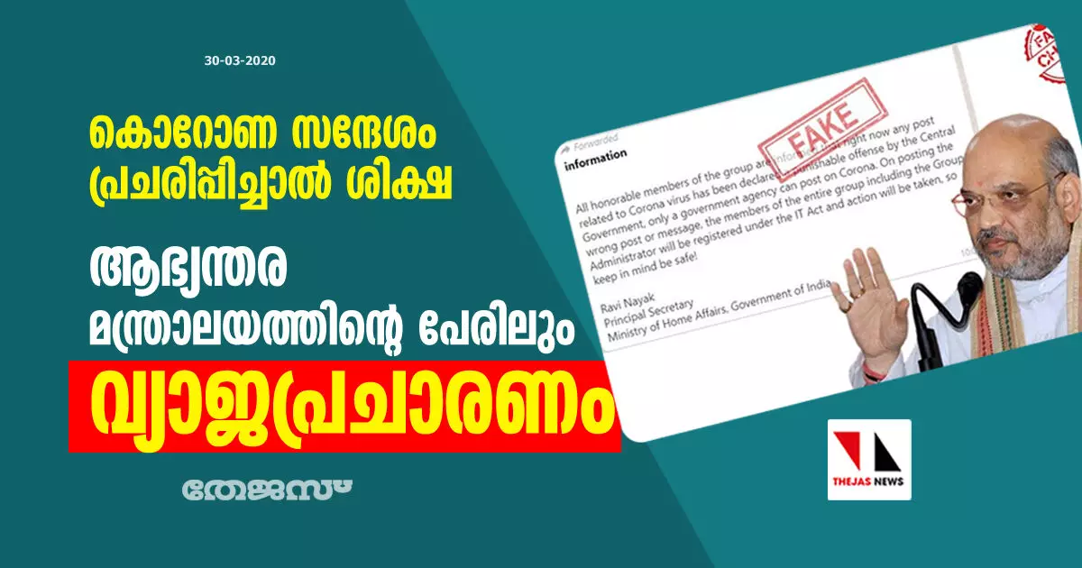 കൊറോണ സന്ദേശം പ്രചരിപ്പിച്ചാല് ശിക്ഷ; ആഭ്യന്തര മന്ത്രാലയത്തിന്റെ പേരിലും വ്യാജപ്രചാരണം