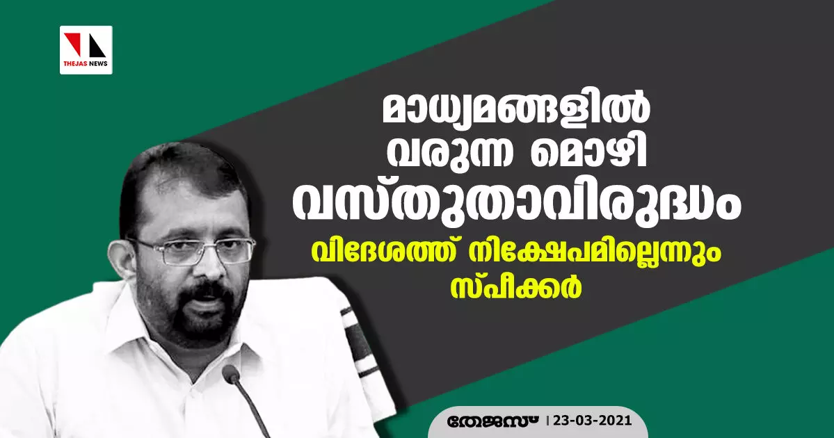 മാധ്യമങ്ങളില് വരുന്ന മൊഴി വസ്തുതാവിരുദ്ധം; വിദേശത്ത് നിക്ഷേപമില്ലെന്നും സ്പീക്കര്