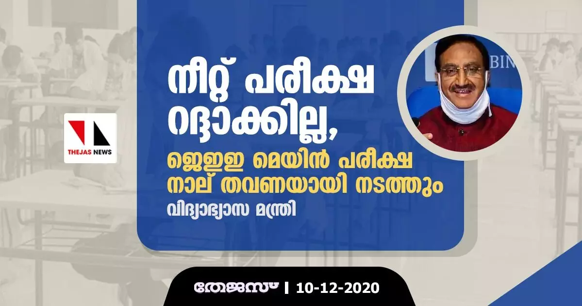 നീറ്റ് പരീക്ഷ റദ്ദാക്കില്ല, ജെഇഇ മെയിന് പരീക്ഷ നാല് തവണയായി നടത്തും: വിദ്യാഭ്യാസ മന്ത്രി