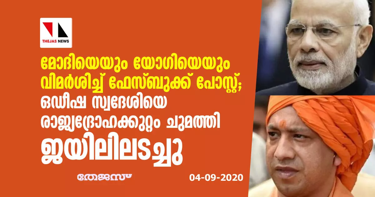 മോദിയെയും യോഗിയെയും വിമര്ശിച്ച് ഫേസ്ബുക്ക് പോസ്റ്റ്; ഒഡീഷ സ്വദേശിയെ രാജ്യദ്രോഹക്കുറ്റം ചുമത്തി ജയിലിലടച്ചു