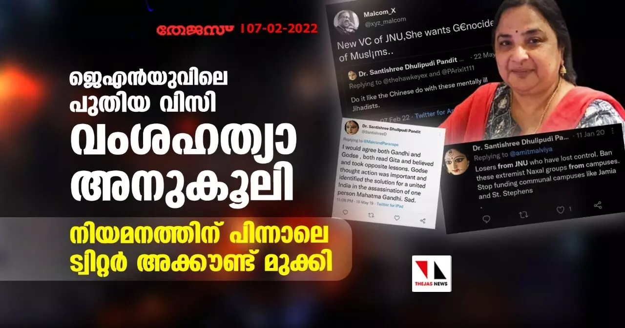 ജെഎന്യുവിലെ പുതിയ വിസി വംശഹത്യാ അനുകൂലി; നിയമനത്തിന് പിന്നാലെ ട്വിറ്റര് അക്കൗണ്ട് മുക്കി