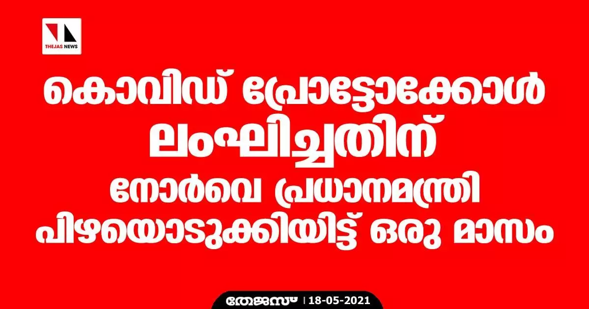 കൊവിഡ് പ്രോട്ടോക്കോൾ ലംഘിച്ചതിന് നോർവെ പ്രധാനമന്ത്രി പിഴയൊടുക്കിയിട്ട് ഒരു മാസം