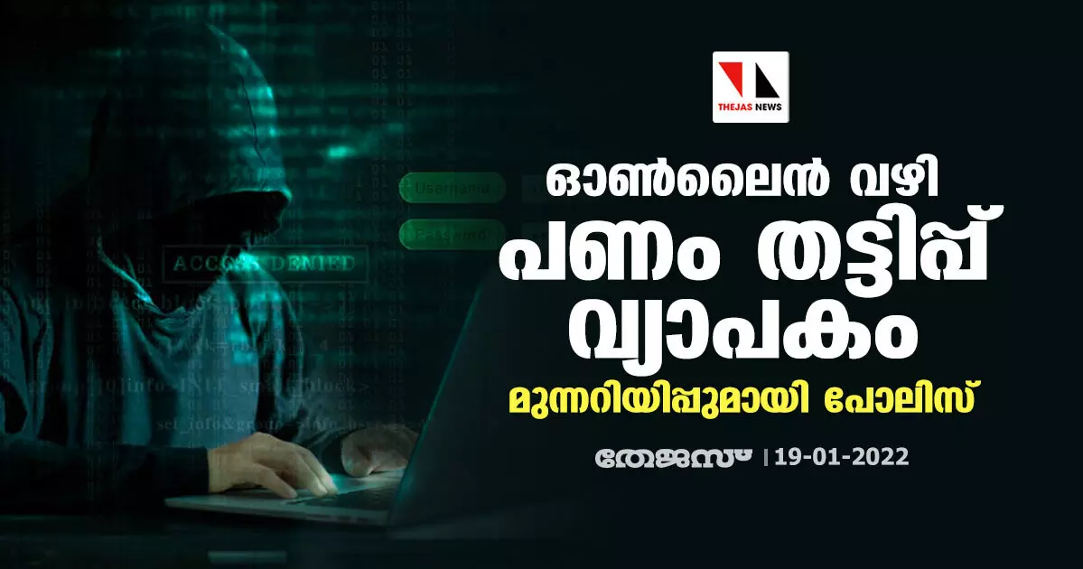 ഓണ്ലൈന് വഴി പണം തട്ടിപ്പ് വ്യാപകം;മുന്നറിയിപ്പുമായി പോലിസ്