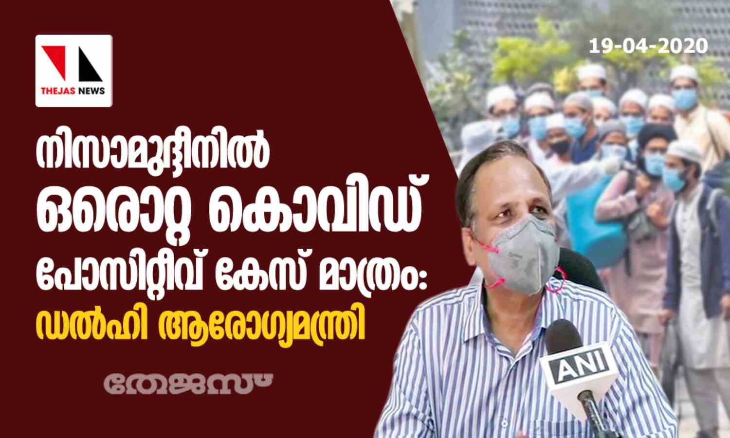 നിസാമുദ്ദീനില് ഒരൊറ്റ കൊവിഡ് പോസിറ്റീവ് കേസ് മാത്രം: ഡല്ഹി ആരോഗ്യമന്ത്രി