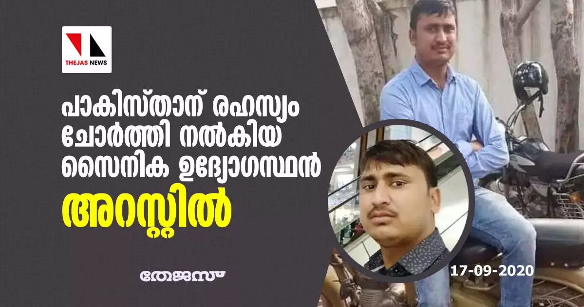 പാകിസ്താന് രഹസ്യം ചോര്ത്തി നല്കിയ സൈനിക ഉദ്യോഗസ്ഥന് അറസ്റ്റില്