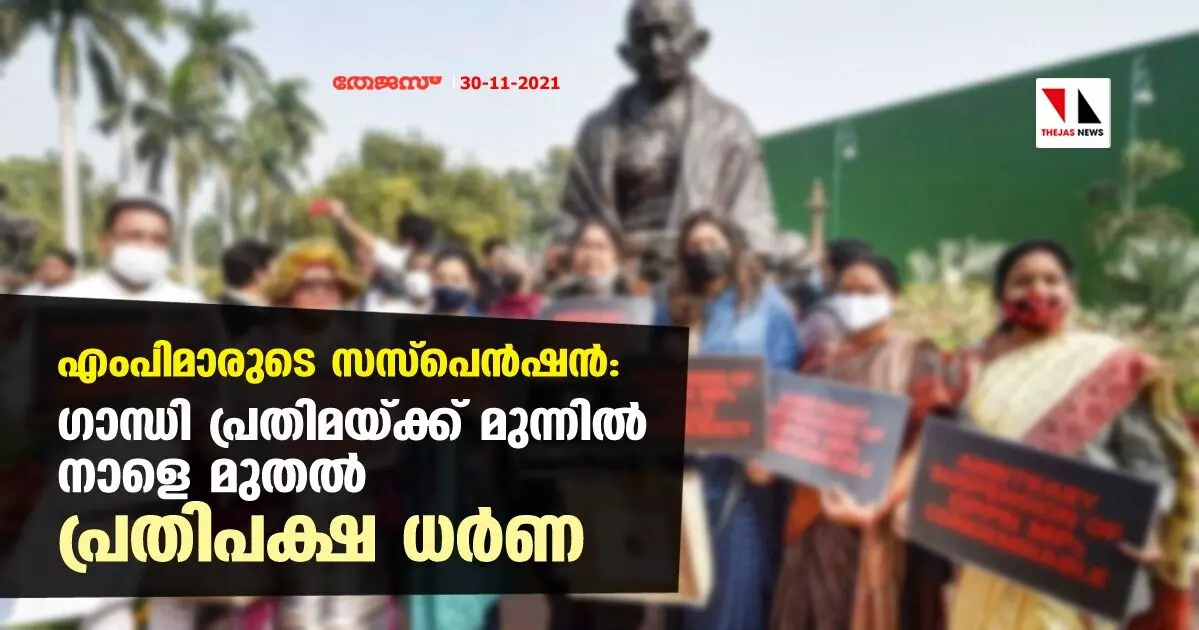 എംപിമാരുടെ സസ്പെന്ഷൻ: ഗാന്ധി പ്രതിമയ്ക്ക് മുന്നിൽ നാളെ മുതൽ പ്രതിപക്ഷ ധർണ